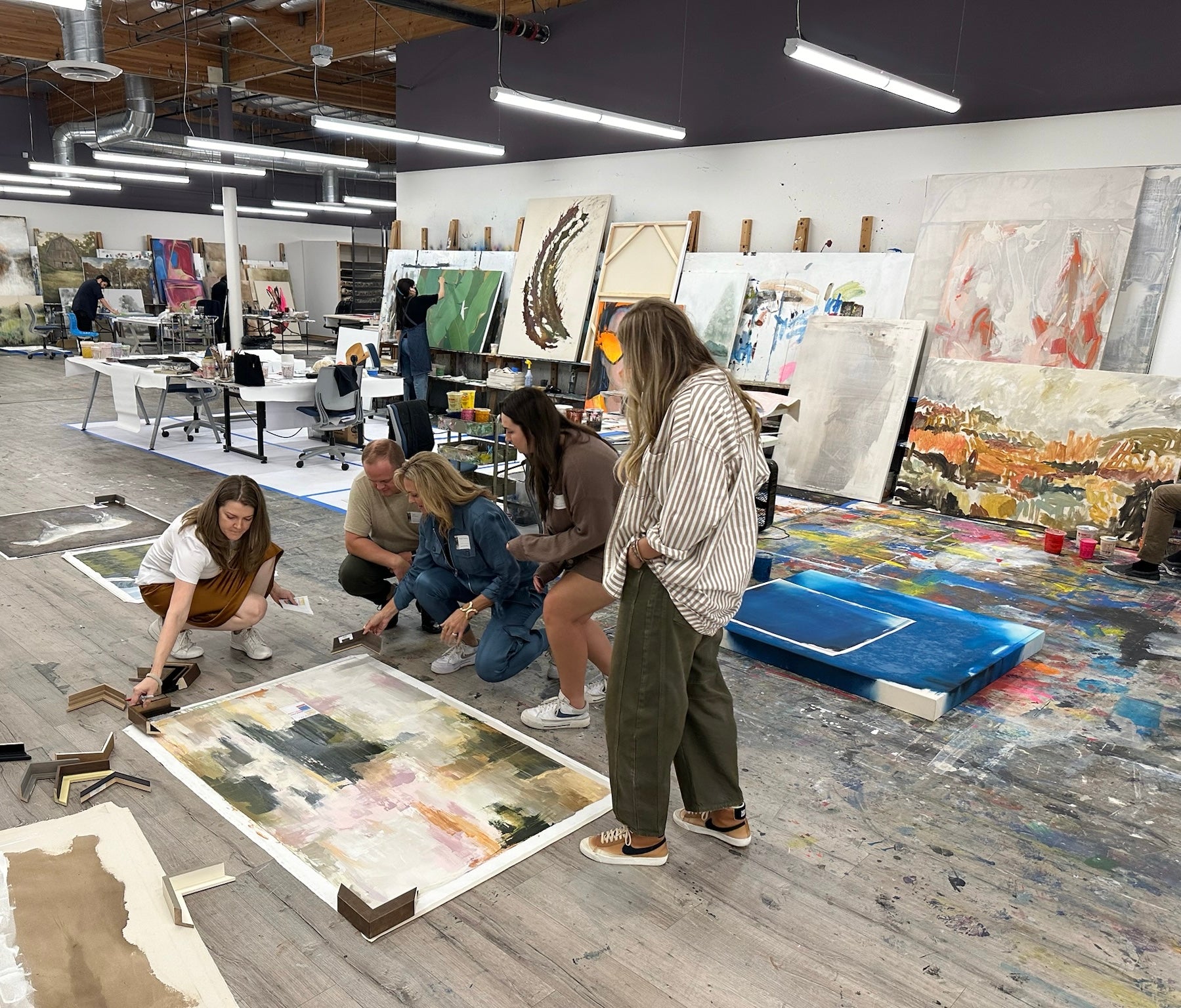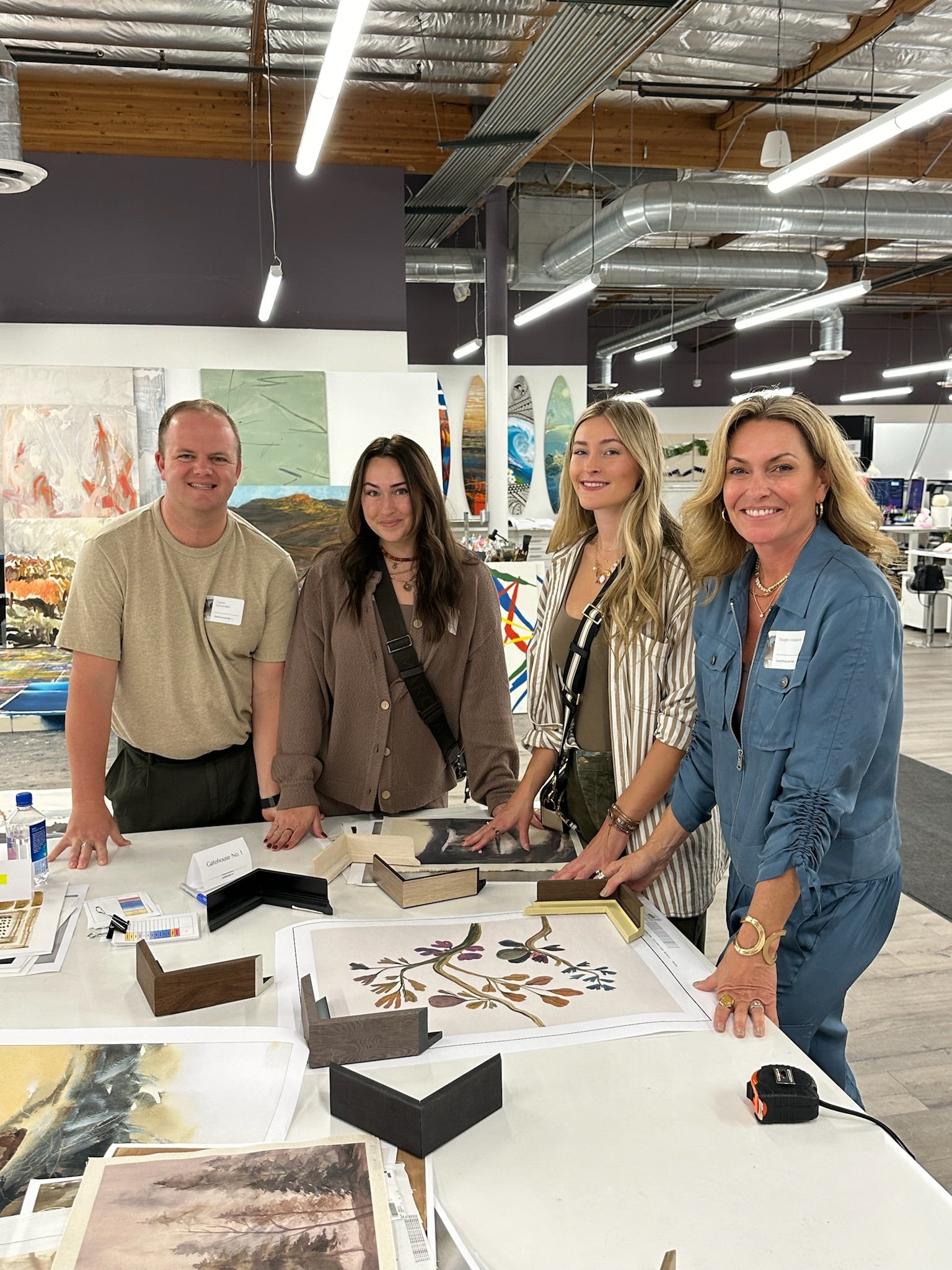The next morning the group set off for the factory tour to see the entire process of bringing a custom order of curated art pieces to our stores. Watching every step in amazement at the many hands of artists, framers, printers, and other amazing and unique techniques this company takes to create such outstanding art in so many forms. We started out seeing the in-company artists painting and creating beautiful original art right in front of us. We even ordered some originals from these artists, carefully selecting the frame styles, and other details. These pieces are now in and currently available on our showroom floor.