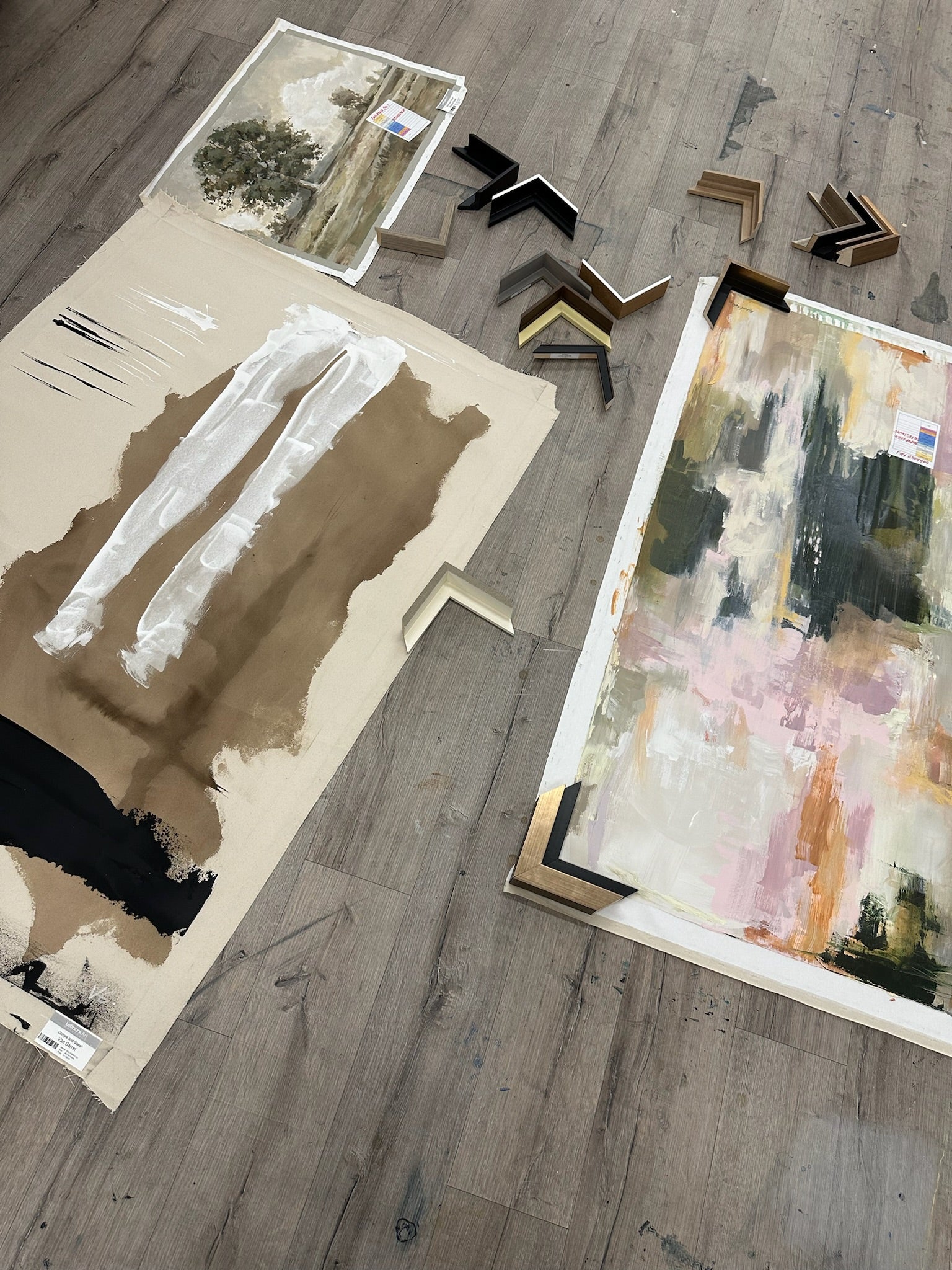 Some of the artwork has hand embellishment or other hand work details, where even more in-house production artists delicately add paint strokes, clay, and leafing.After hand embellishments, it goes to the framers where the custom decorative frame adds the final details for a beautiful art piece ready to hang on a wall.