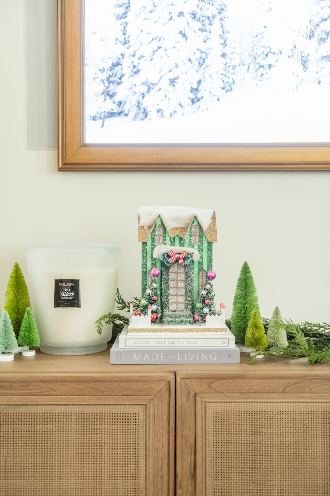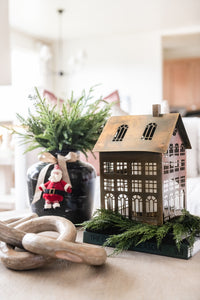 While traditional holiday decor is steeped in elegance, there's always room for a touch of playfulness, especially for Megan and her two young kids. We incorporated whimsical elements such as Village Houses and Santa figurines. These delightful accents were for sure her son, Dean's favorite moments of the holiday decor.