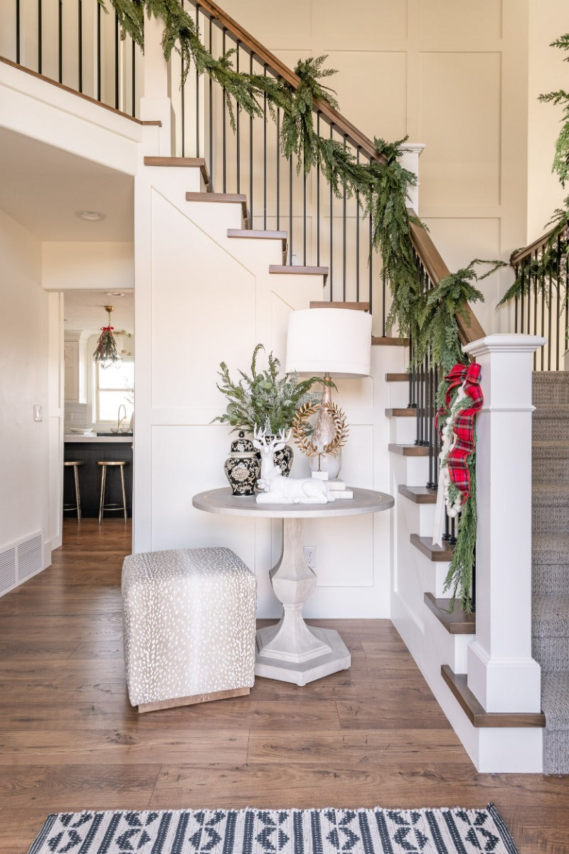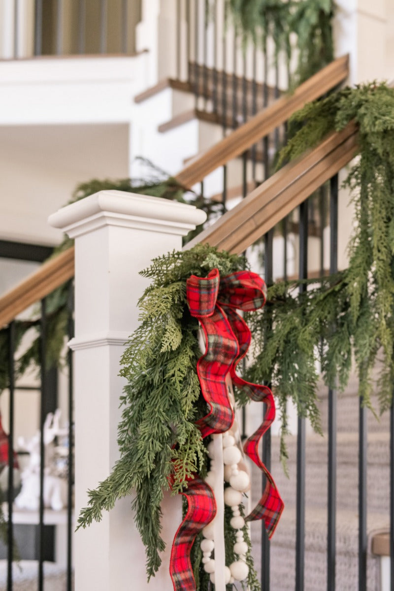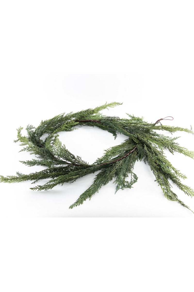 A Gatehouse classic and holiday favorite: this realistic looking faux garland is a must have for holiday decor. The look of fresh cut greens could fool anyone plus unlike the real thing, you will love using this year after year. Layer this 6ft. garland together to add more depth or swag it along stair rails, mantels, and down a table top. You will find so many uses and places to add this throughout your home you will simply want several, which is why we have an option to buy more and save when you buy a case of six...Gatehouse Style Tip: To create the perfect mantel start with any standard wired and prelit pine garland as a base. Secure it to the mantel, start with any standard top with nails or 3M strips and simply begin to layer several Deluxe Cedar Garlands together using the wire branches of the base garland to secure them well. Layer multiple cedar garlands with other greenery like pine sprays for a full realistic garland. Add in your favorite ornaments and a ribbon for a full dramatic effect.