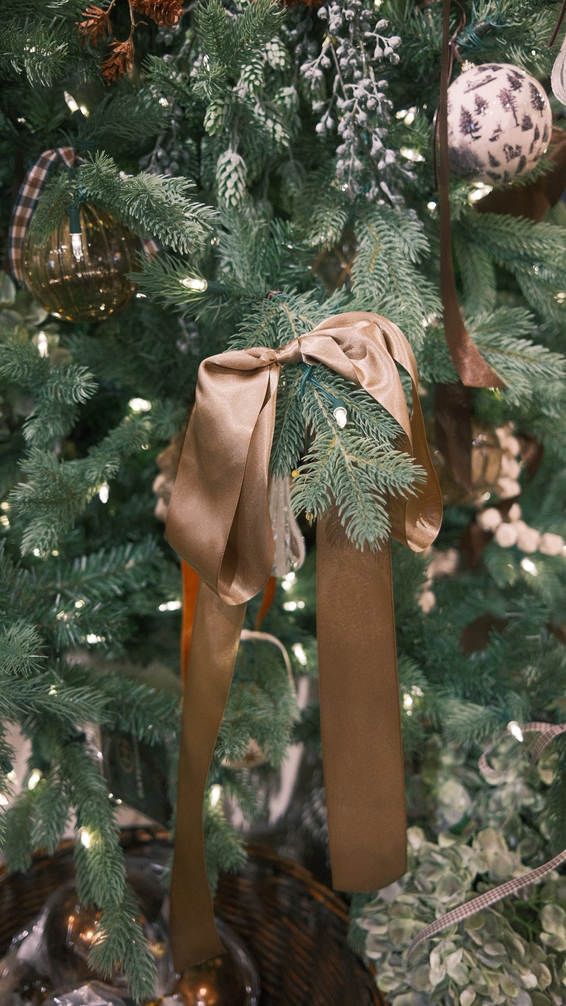 This taupe amber glass ornament features a sophisticated swirling ribbed texture that captures and reflects light beautifully. Its rich green hue enhances your tree with a warm, glowing brilliance, adding an elegant touch to your holiday decor.