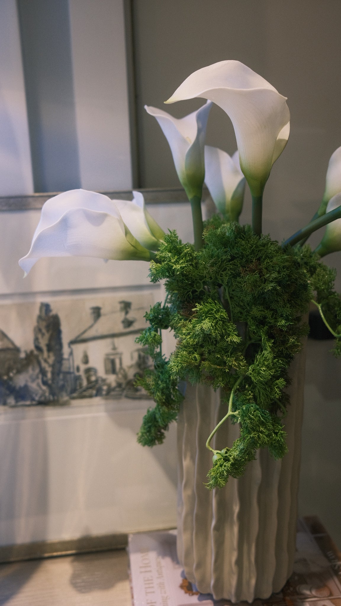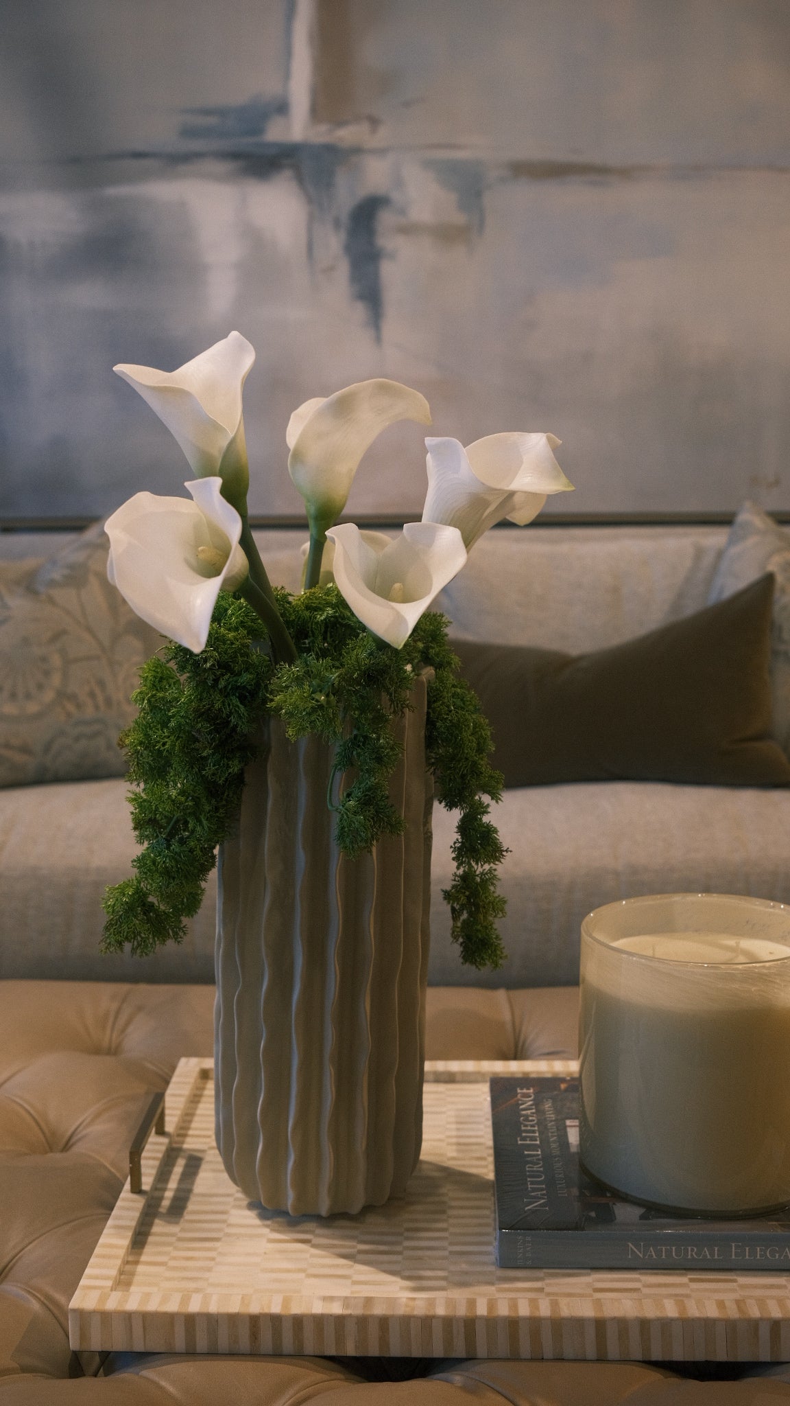 A realistic look and feel faux Calla Lily, measuring at 30.5" tall. This luxurious faux stem of a timeless white lily will pair perfectly with your favorite vase. Style simply with a bunch of these lilies, or mix into a floral arrangement.