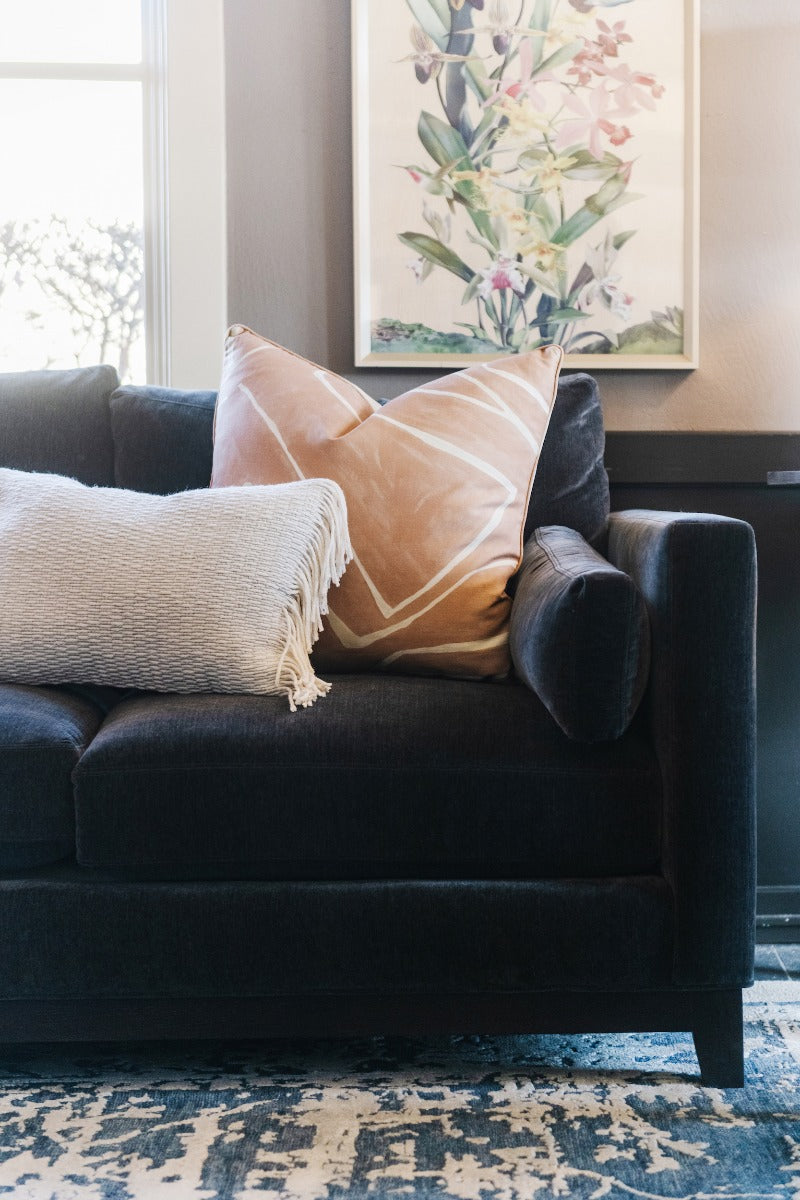 Stunning pillow print designed by famous interior designer Kelly Wearstler. We love the artistic style and dusty pink coloring. This pillow will look gorgeous in any style of home.