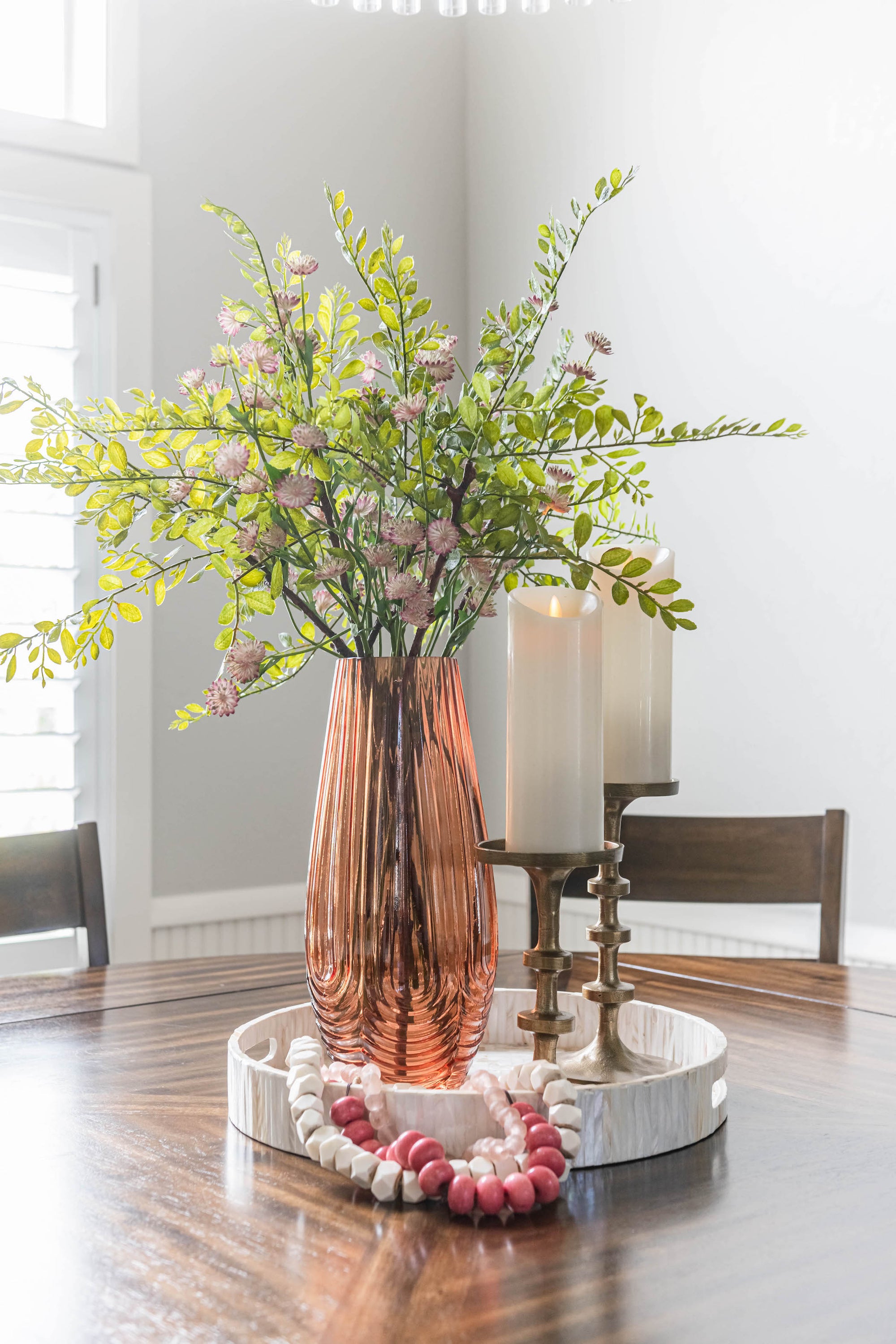 This japonica leaf spray is such a beautiful light shade of green to bring into your home decor. The small leaves sprouting off of a dark branch give a realistic look to style into your vases, arrangements and even holiday decor.