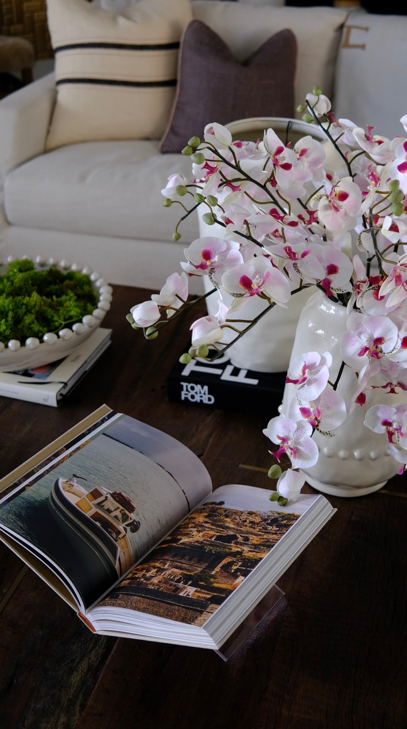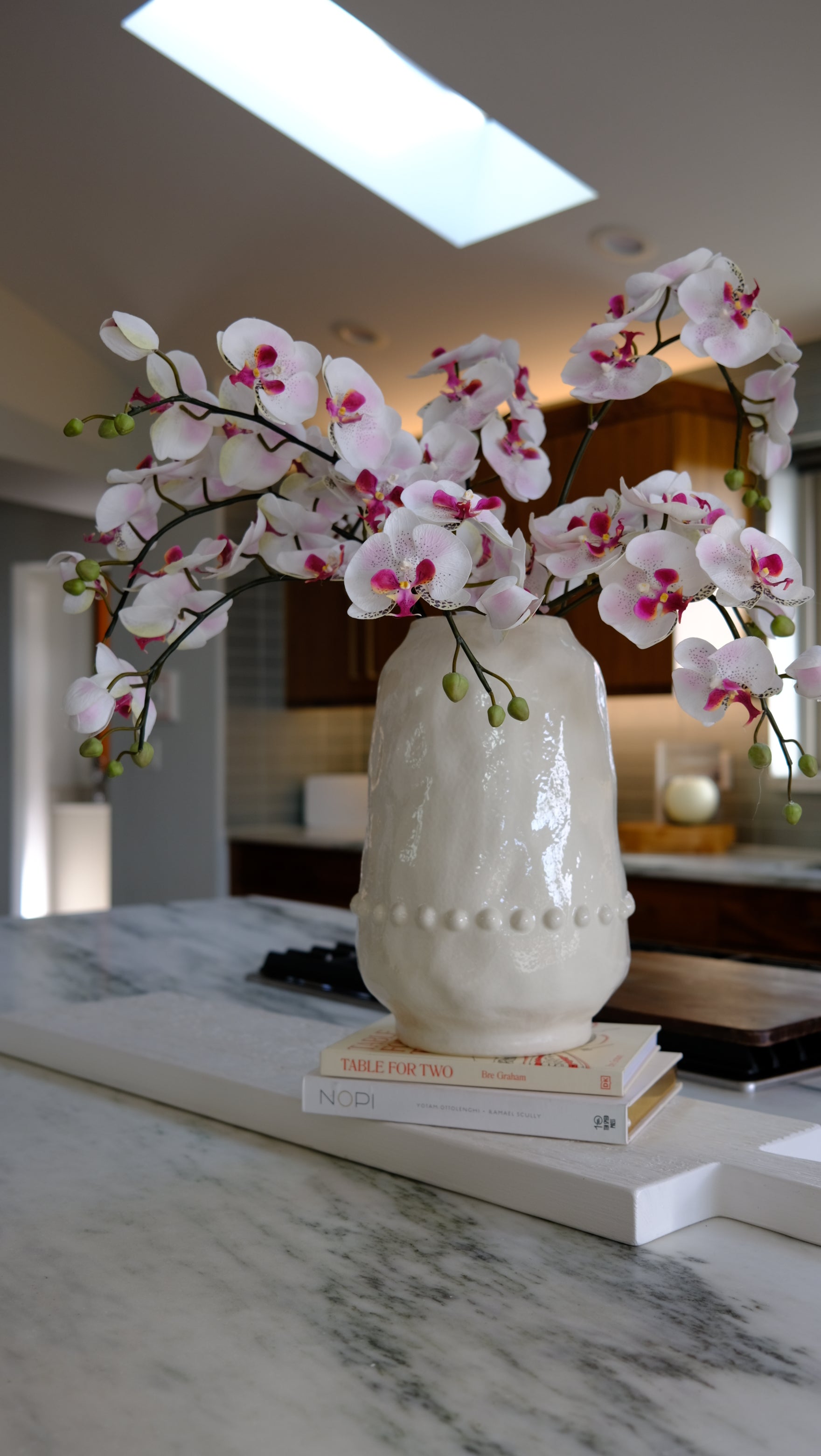 A timeless flower of elegance, the orchid. This cream and mauve orchid Pair with your favorite vase or vessel to style your spaces and bring elements of nature and pops of color.