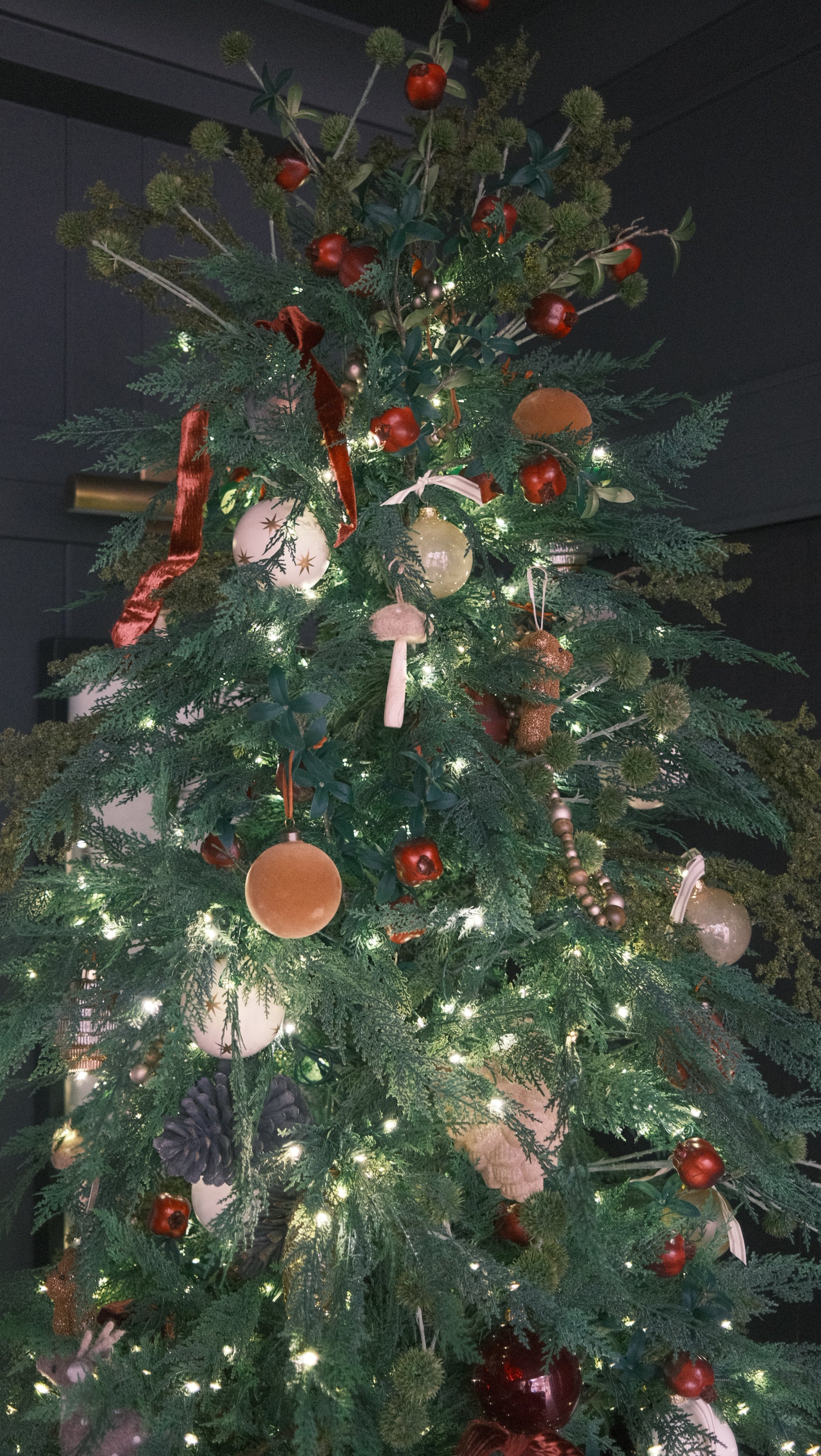 This glass taupe pinecone ornament, finished with delicate glitter, measures a striking 8 inches. Its elegant hue and natural form bring a refined touch to holiday displays, whether adorning trees, accenting garlands, or arranged simply in bowls. Perfect for adding subtle sophistication and warmth with natural elements to your seasonal décor.