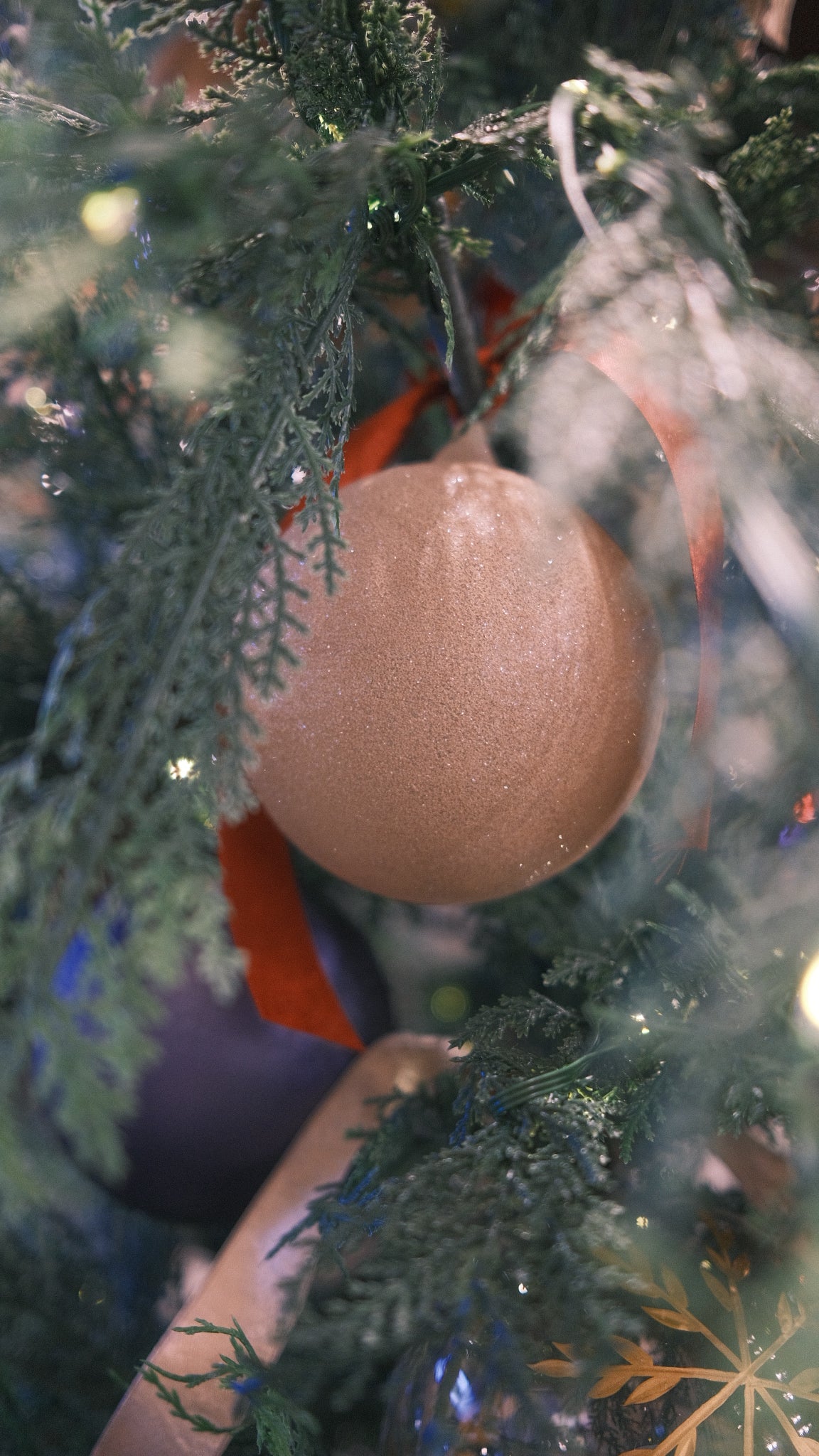 This 4-inch glass ball ornament features a rich taupe color, elegantly sugared with fine glitter for a subtle, sophisticated shimmer. Its refined finish makes it an ideal accent to enhance any holiday setting with graceful style.